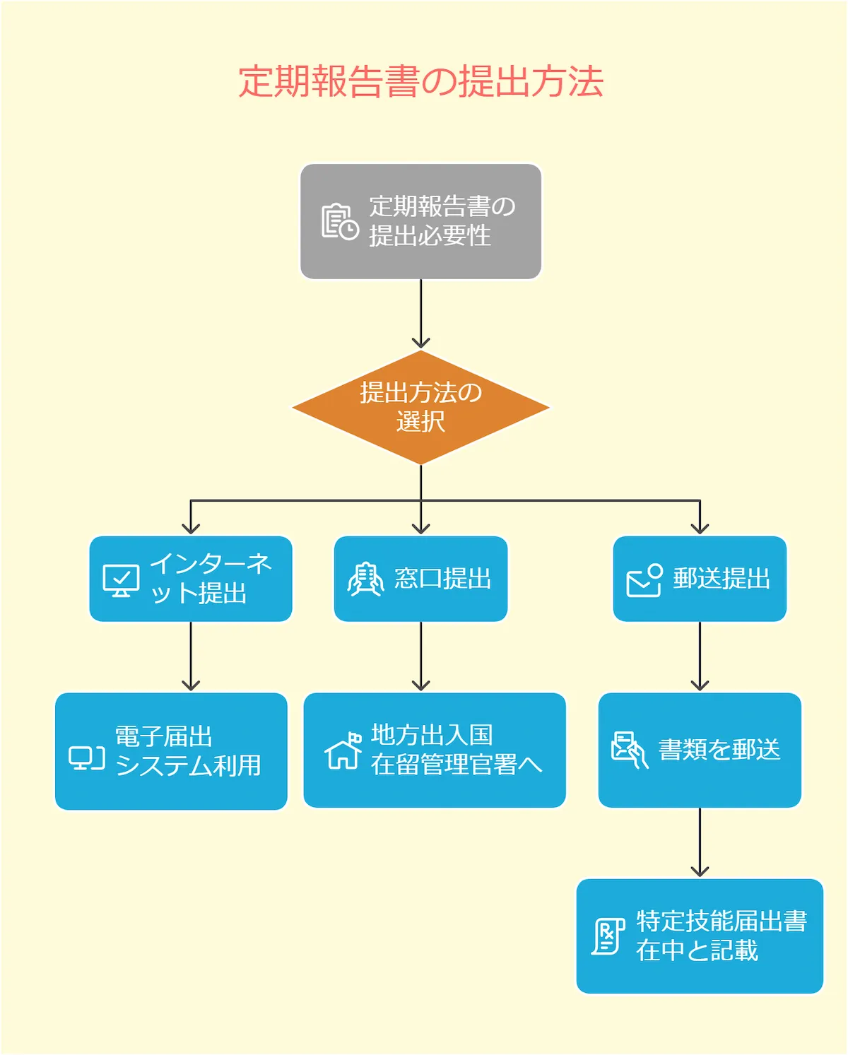 定期報告書は、1年に1度提出する必要があります。提出方法は以下の3つです。