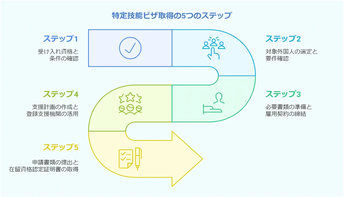 3.特定技能ビザ取得の5つのステップ