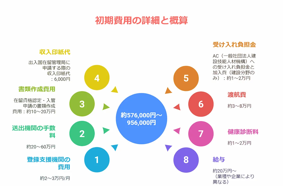 初期費用には、各機関への手数料や収入印紙代、加入費などがかかります。また、採用したベトナム人に対して支払う費用には、渡航費や健康診断料、給与などがあります。
